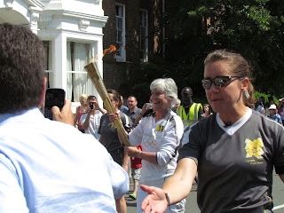 Today was the penultimate torch relay day for the London Olympics 2012. So, we rushed out to see it passing through North End Road, in West Kesington. We made the right choice of viewing location, as there were many people, but nothing overwhelming nor crowded. In fact, it was rather easy to get there on the tube, as well as coming back home.